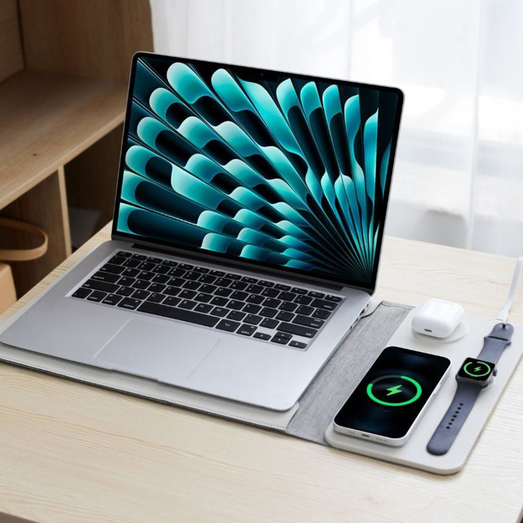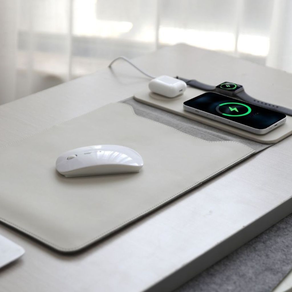 Sleeve, mouse pad, mat & charger — everything you need in one sleek setup.