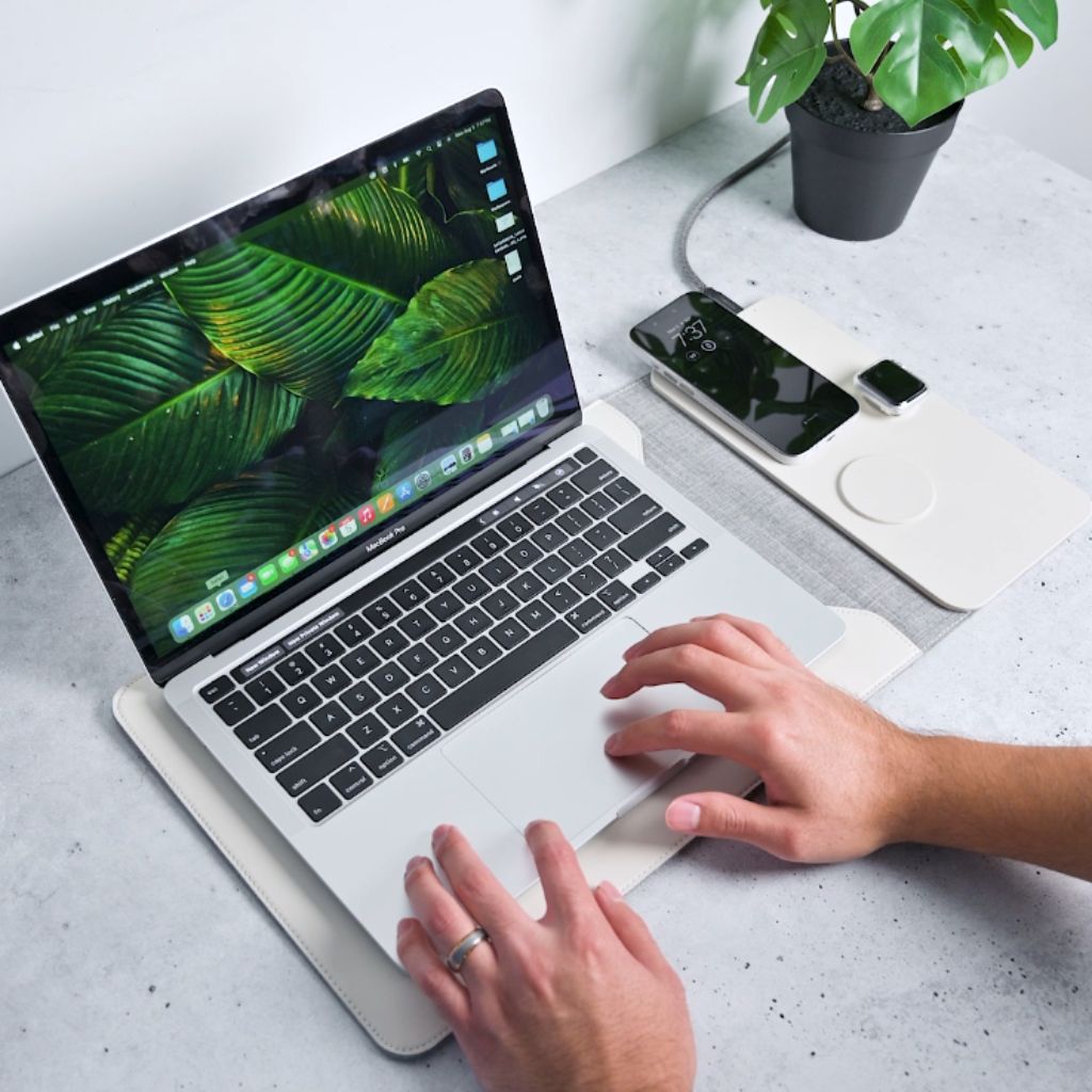 Work anywhere while your devices stay charged and aligned perfectly beside you.