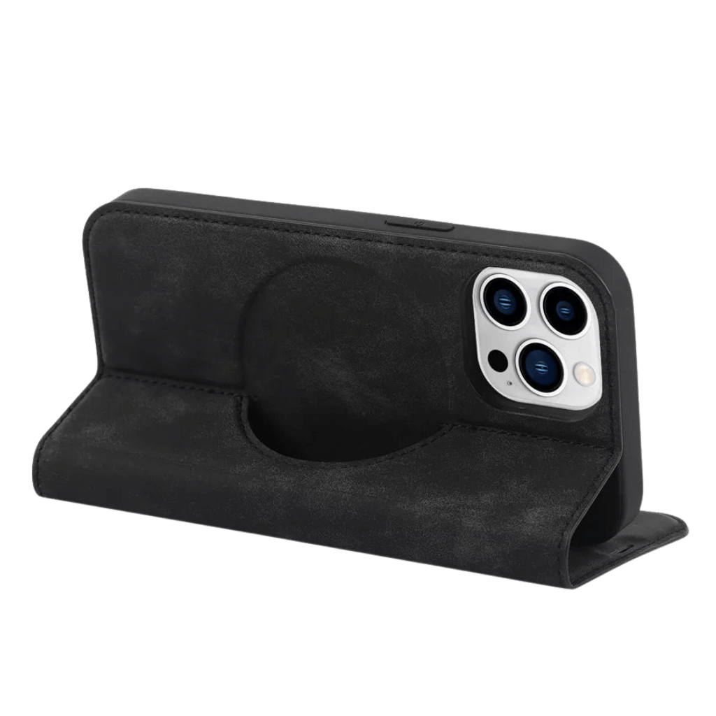 Transform your iPhone experience with our case's versatile kickstand feature. The foldable folio cover doubles as a multi-angle stand, perfect for hands-free viewing. Whether you're watching videos, reading, or engaging in face-to-face chats, the kickstand provides the perfect angle for any activity. Enjoy the convenience and flexibility of this innovative design, making your daily use more enjoyable and practical.