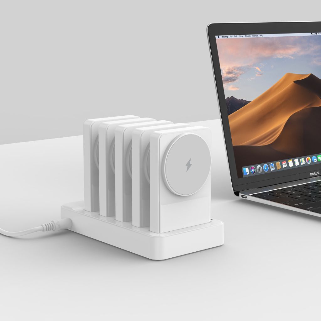 Five MagSafe power banks live in one hub—always full, always ready when you walk out the door.