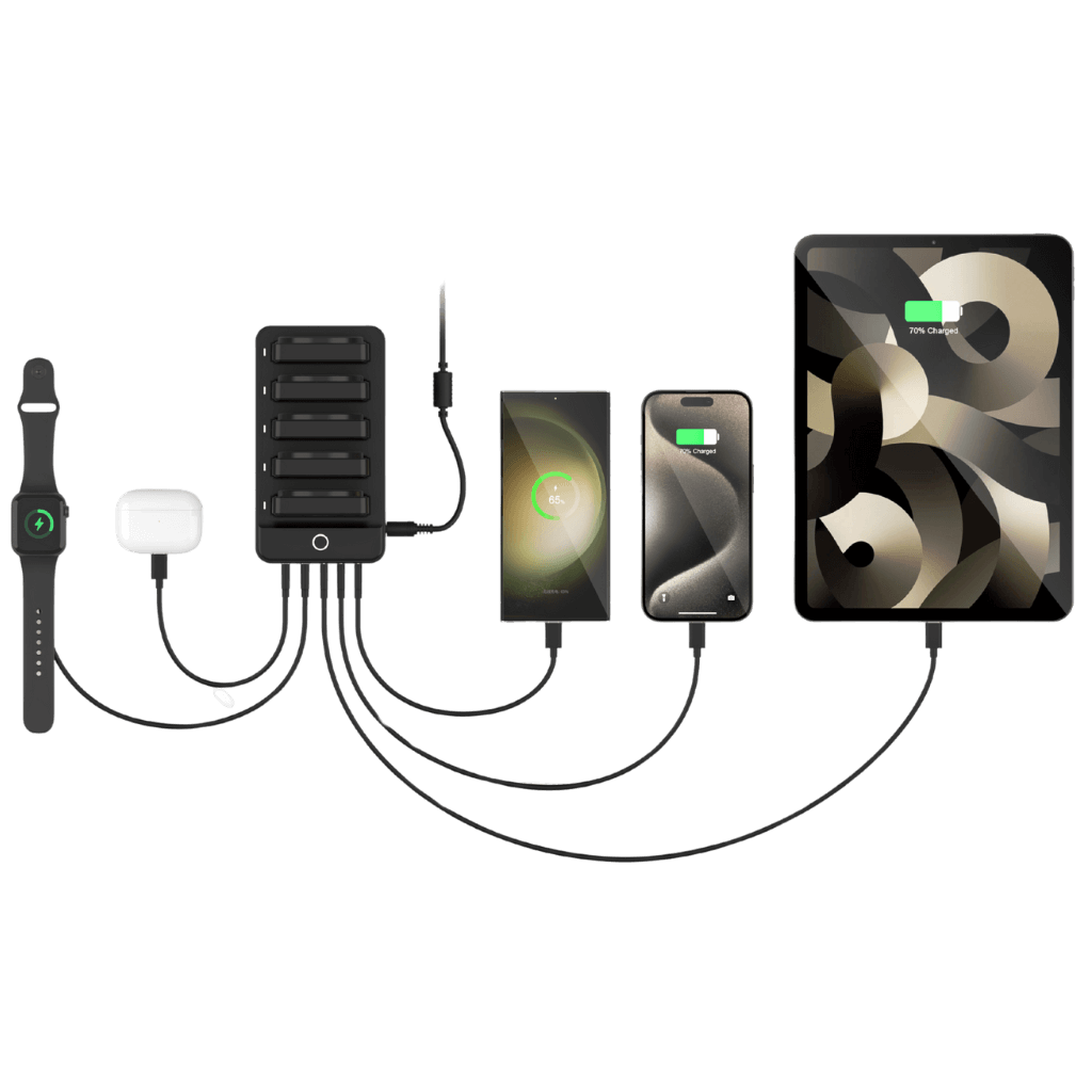 Power multiple phones, tablets, earbuds, and more—wired or wirelessly.